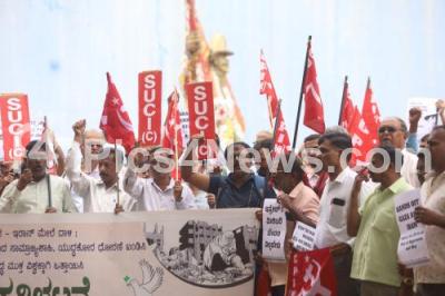 Event Description : Members of SUCI and Left Parties Joint Committee demand to oppose war policy and assert commitment to world peace while protesting against Israel war, at Freedom Park, in Bengaluru on Saturday 28th June 2025