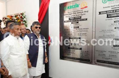 Photo Caption : DCM DK Shivakumar with Minister KH Muniyappa, MLA N. Srinivas, KASSIA President M.G. Rajagopal, General Secretary Suresh N Sagar, KCOE and President R. Prithviraj, NICE Institute Chief, Former MLA Ashok Kheni and others at the inauguration of the KASSIA Centre of Excellence and Innovation and Exhibition Centre buildings at the Dabaspet industrial Area, in Bengaluru on Saturday 28th June 2025
