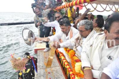 CM Siddaramaiah offered Bagina to River Cauvery at KRS Dam