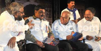 Photo Caption : Minister Eshwar Khadre and HC Mahadevappa with PGR Sindhia and others seen during the Mahanayaka Samrat Ashoka drama program at Ambedkar Bhavan, in Bengaluru on Sunday 13th July 2025