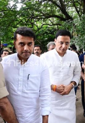 Photo Caption : AICC General Secretary Randeep Surjeewala arriving to pay his last respect to Multilingual Senior Actress B Sarojadevi (87) who passed away today at her residence, in Bengaluru on Monday 14th July 2025