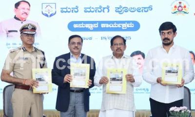 Home Minister Dr. G Parameshwara with MLA Priya Krishna, DG and IGP MA Saleem and City, Police Commissioner Seemanth Kumar Singh during the launch of "Mane Manege Police" program at Govindraj Nagar, in Bengaluru on Friday 18th July 2025