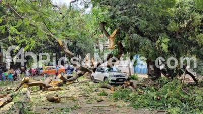 Huge tree uprooted and damaged a car near Clarence High School, Richards Town, due to heavy winds and rain, in Bengaluru on Tuesday 22nd July 2025