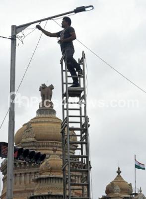 Photo Caption : Street light repair work in progress at Gopalgowda Circle, in front of Vidhana Soudha, in Bengaluru on Wednesday 23rd July 2025
