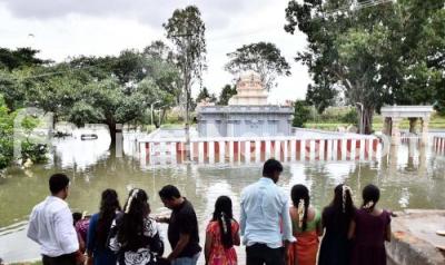 Photo Caption : Parasurama Temple at Nanjangud flooded after water released from the Kabini Dam , in Mysuru on Sunday 27th July 2025
