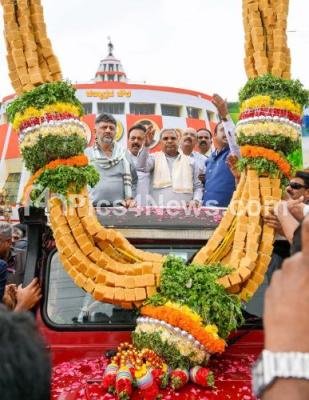 Photo Caption : Chief Minister of Karnataka Siddaramaiah with DCM DK Shivakumar, Ministers, MLAs, MLC and others during the inauguration and foundation stone laying ceremony of various works in Maddur taluk, Mandya district, in Mandya on Monday 28th July 2025