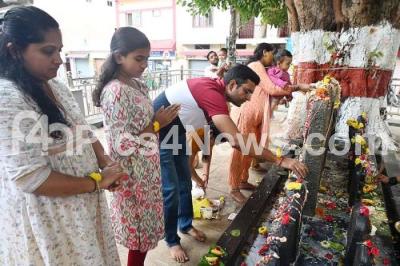 Event Description : People offer pooja at Panchalingeshwara temple at Palace Guttahalli on the occasion of Nagarpanchami, in Bengaluru on Monday 28th July 2025