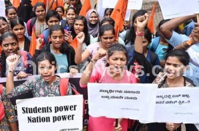 Students of ABVP (Akhila Bharatiya Vidyarthi Parishad) protesting and demanding the release of students stipend and improvement of Basic facilities in Hostels, at Freedom Park, in Bengaluru on Wednesday 30th July 2025