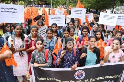 Photo Caption : Students of ABVP (Akhila Bharatiya Vidyarthi Parishad) protesting and demanding the release of students stipend and improvement of Basic facilities in Hostels, at Freedom Park, in Bengaluru on Wednesday 30th July 2025