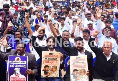 Photo Caption : Members of Karnataka Madiga Dandora Community Organizations in Karnataka State led by Former Union Minister A Narayanaswamy staging a protest at Freedom Park, demanding implementation of Scheduled Caste reservation, in Bengaluru on Friday 1st August 2025