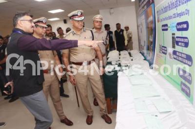 Photo Caption : Police Commissioner Seemanth Kumar Singh inspects the seized items during the Property parade press meet at Police Commissioner office, in Bengaluru on Monday 4th August 2025