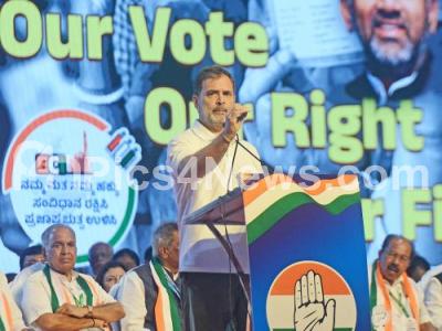 Rahul Gandhi, Leader of the Opposition in the Lok Sabha, addressing during the Vote Adhikar protest rally against alleged vote rigging in the Lok Sabha elections at Freedom Park, in Bengaluru on Friday 8th August 2025