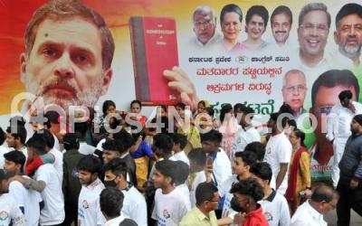 Photo Caption : Congress supporters during the Vote Adhikar protest rally against alleged vote rigging in the Lok Sabha elections at Freedom Park, in Bengaluru on Friday 8th August 2025