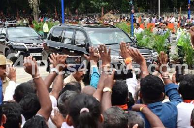 Photo Caption : Crowd gathered at Mekhri Circle to welcome Prime Minister Narendra Modi during his visit to Bengaluru on Sunday 10th August 2025