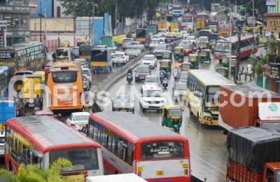 Photo Caption : Traffic Jam on Mysuru road due to rain, in Bengaluru on Wednesday 13th August 2025