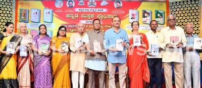 Photo Caption : Prof. Allama Prabhu Bettaduru, Savitri Mujumadara, Gayatri, Director, Kannada and Culture Dept., Jayanth Kaikeni, Dr. Manasa, President, Kannada Book Authority and others during the release of Kannada Books of Senior Writers at Nayana, in Bengaluru on Wednesday 13th August 2025