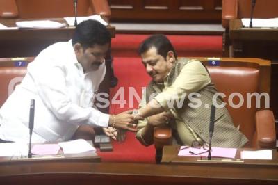 Photo Caption : Ministers Shivaraj Thangadagi and Zameer Ahmed Khan during the Council Session at Vidhana Soudha, in Bengaluru on Thursday 14th August 2025