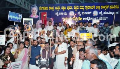 Event Description : Members of KPCC and the Bangalore City District Congress Committees participated in the candlelight march to against alleged vote rigging in the Lok Sabha elections at Freedom Park, in Bengaluru on Thursday 14th August 2025