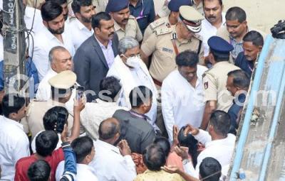 Photo Caption : Chief Minister of Karnataka Siddaramaiah visited and inspected the spot where a cylinder blast at Chinnayanapalya Wilson Garden took place, in which a person was killed and 12 persons injured, in Bengaluru on Friday 15th August 2025