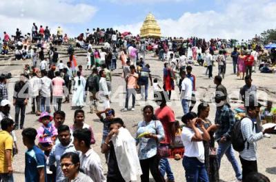 Photo Caption : Crowd at the Independence Day Flower Show at Lalbagh, in Bengaluru on Friday 15th August 2025