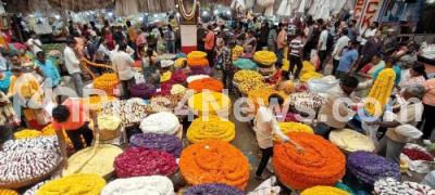 People shopping for flowers and vegetables for Ganesh Chaturthi Festival at KR Market, in Bengaluru on Sunday 24th August 2025