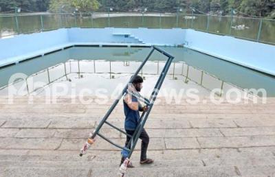 Photo Caption : Preparations for the Gowri Ganesha idols immersion at Yeddyur Lake, in Bengaluru on Tuesday 26th August 2025