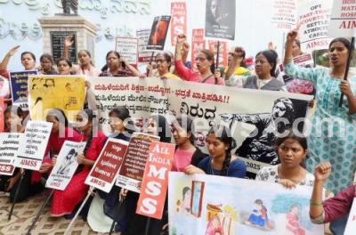 Members of AIMSS protesting and demanding the government Education, Employment and Security for Women at Freedom Park, in Bengaluru on Monday 1st September 2025