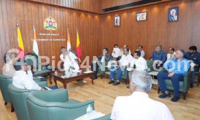 Photo Caption : DCM DK Shivakumar meeting with officials regarding the allocation of plots to landless civic workers belonging to the Scheduled Castes and Tribes of the corporation under the Special Unit Scheme, at Vidhana Soudha, in Bengaluru on Monday 1st September 2025