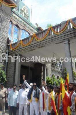 Event Description : Activist Vatal Nagaraj and his supporters staged a protest on Greater Bengaluru Authority (GBA) at BBMP Head Office, in Bengaluru on Thursday 4th September 2025