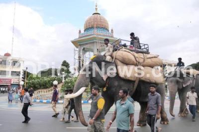 Photo Caption : Dasara elephants walkathon, ahead of Mysuru Dasara jamboo savari procession, in Mysuru on Sunday 7th September 2025