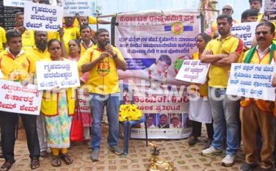 Photo Caption : Members of KRS party performing "Maha Mangalarathi" to protest against the Inspector T Manjanna and 11 other policemen of Chamarajpet Police Station, for their involvement with the drug peddlers, at Freedom Park, in Bengaluru on Tuesday 16th September 2025