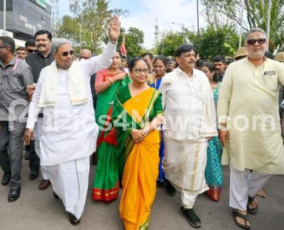 Photo Caption : Chief Minister of Karnataka Siddaramaiah with Writer Banu Mushtaq arriving after offering pooja at Goddess Chamundeshwari Temple to inaugurate Nada Habba Dasara Festival, in Mysuru on Monday 22nd September 2025