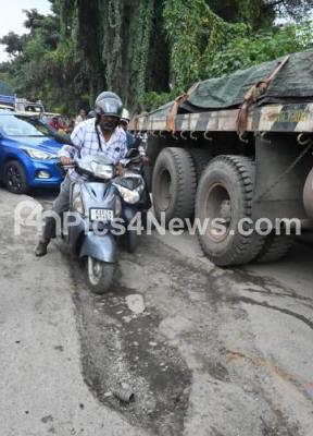 Photo Caption : Pothole menace at Mahalakshmi Layout, causing inconvenience to people and motorists, in Bengaluru on Wednesday 24th September 2025