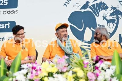 Photo Caption : DCM DK Shivakumar with Forest Minister Eshwar Khandre, Former Indian Cricketer Anil Kumble participated in the Wildlife Week program and walk organized in front of the Vidhana Soudha, in Bengaluru on Thursday 2nd October 2025