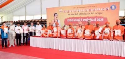 Photo Caption : Shivarudra Mahaswamiji, Dr. Allama Prabhu, Prabhu Channabasava Swamy, Dr. Gangamataji and Sirs of Lingayutha Matadipatigala Okkuta and Basava Kalyana Samasta Basavarapara Sanagatane during press meet on "Basava Samskruthi Abhiyana 2025", which will be held on 5th October at Palace Grounds, in Bengaluru on Friday 3rd October 2025