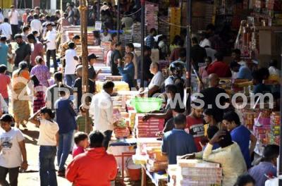Photo Caption : People shopping Diwali firecrackers for the Diwali Festival at Jayanagar Grounds, in Bengaluru on Sunday 19th October 2025