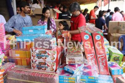 Photo Caption : People shopping Diwali firecrackers for the Diwali Festival at Rama Mandira Grounds, in Bengaluru on Monday 20th October 2025