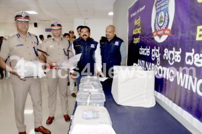 Photo Caption : Police commissioner Seemanth Kumar Singh inspects the seized drugs worth 5.5 crores, during the Property Parade press meet at Police Commissioner Office, in Bengaluru on Thursday 23rd October 2025