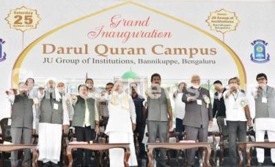 Chief Minister of Karnataka Siddaramaiah with Former Union Minister Rehman Khan, Ministers Zameer Ahamed Khan, Rahim Khan and other during the inauguration of "Darul Quran Campus" at Bannikuppe , in Bengaluru on Saturday 25th October 2025