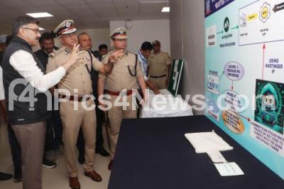 Photo Caption : Bengaluru City Police Commissioner Seemanth Kumar Singh inspects the Bank accounts hacking route during the press conference on Rs 48 crore fraud case involving hacking bank accounts and using foreign identities, which was busted by Cybercrime police, in Bengaluru on Monday 27th October 2025