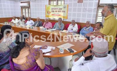 Photo Caption : Go Ru Channabasappa with Writer Vasundara Bhupati, Kaviraj, Kannada Development Authority President Dr. Purushotham Bilimale and others during the seminar on "Tribasha Neeti Saku Yeradu Nudi Kalike Beku" (Trilingualism is enough, learning two languages is needed) at Gandhi Bhavan, in Bengaluru on Tuesday 28th November 2025