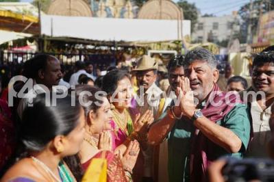 Photo Caption : DCM DK Shivakumar participated in the re-inauguration of the Sri Ramachandra Temple and the installation of a new statue of Lord Venkateswara Swamy, at Chikkabanavara, in Bengaluru on Sunday 2nd November 2025