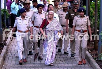 Photo Caption : Activists Medha Patkar arriving at press club during report release on A Fact Finding Report on Honnavara Port Project, in Bengaluru on Tuesday 4th November 2025