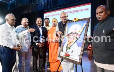 Photo Caption : Former Minister HM Revanna with Dr. DV Paramashivamurthy, Chancellor, Kannada University, Hampi, Dr. Channappa Katti, Founder President, Kuvempu Bhasha Bharati Authority, Dr. MR Hulinayakara and others during the release of "Kurabara Charitre" book of VR Hanumantaiah and one day seminar at KASSIA Auditorium, in Bengaluru on Sunday 9th November 2025