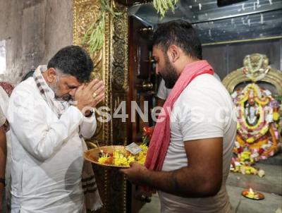 Photo Caption : DCM DK Shivakumar offered prayers at Kenkeramma temple in Kanakapura on Tuesday 25th November 2025