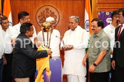 Photo Caption : CM Siddaramaiah unveiling the Trophy of Hockey Men Junior World Cup, in Bengaluru on Tuesday 25th November 2025