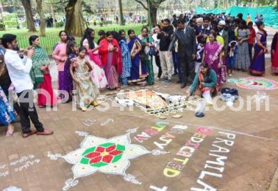 Photo Caption : Rangoli competition during the Hoogala Habba 2025, a flower show at Cubbon Park, The event features floral installations, over 100 varieties of flowers, stalls selling plants and crafts, cultural programs, in Bengaluru on Sunday 30th November 2025
