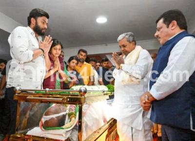 Photo Caption : Chief Minister of Karnataka Siddaramaiah and Minister Zameer Ahmed Khan paid their last respect to Congress leader and Former MLA RV Devraj (67) who passed away due to cardiac arrest, in Bengaluru on Tuesday 2nd December 2025
