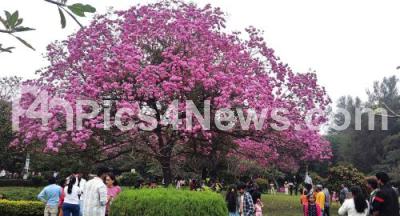 Photo Caption : Pink tabebuia rose flowers in full bloom and attract the visitors at Cubbon Park, in Bengaluru on Wednesday 3rd December 2025