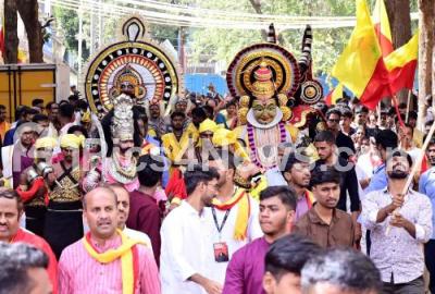 Photo Caption : College students during the "Kannada Habba", 8th Mile Engineering Utsav of RV Engineering College at CS Grounds, in Bengaluru on Thursday 4th December 2025